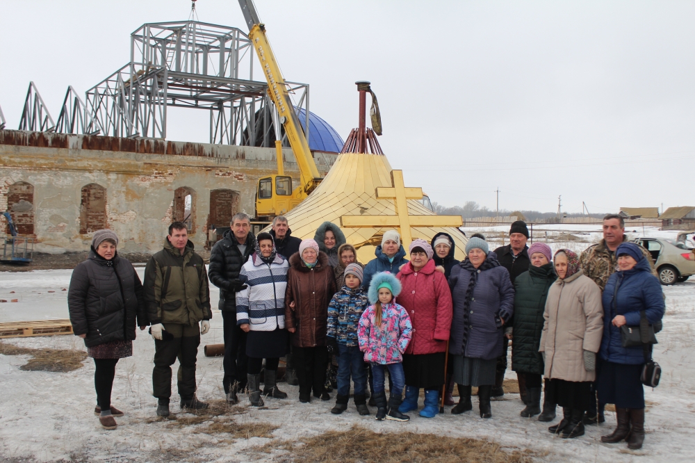 Освящение купола и крестов на храм соверщил благочинный Димитриевского округа протоиерей Константин Клевцов. В слове, обращенном к собравшимся жителям села отец Константин напомнил, что Крест как символ победы и бессмертия вновь воздвигается над селом. Русский народ силен именно своей отеческой Православной верой и должен возвратиться на свой исторический путь.